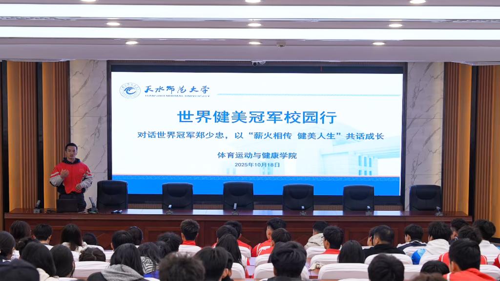 10月18日,天水师范大学以“薪火相传 健美人生”为主题,启动“世界健美冠军校园行”系列活动,特邀世界健美冠军郑少忠,与学校师生、健身行业从业者展开深度交流,为校园体育文化发展注入全新活力。