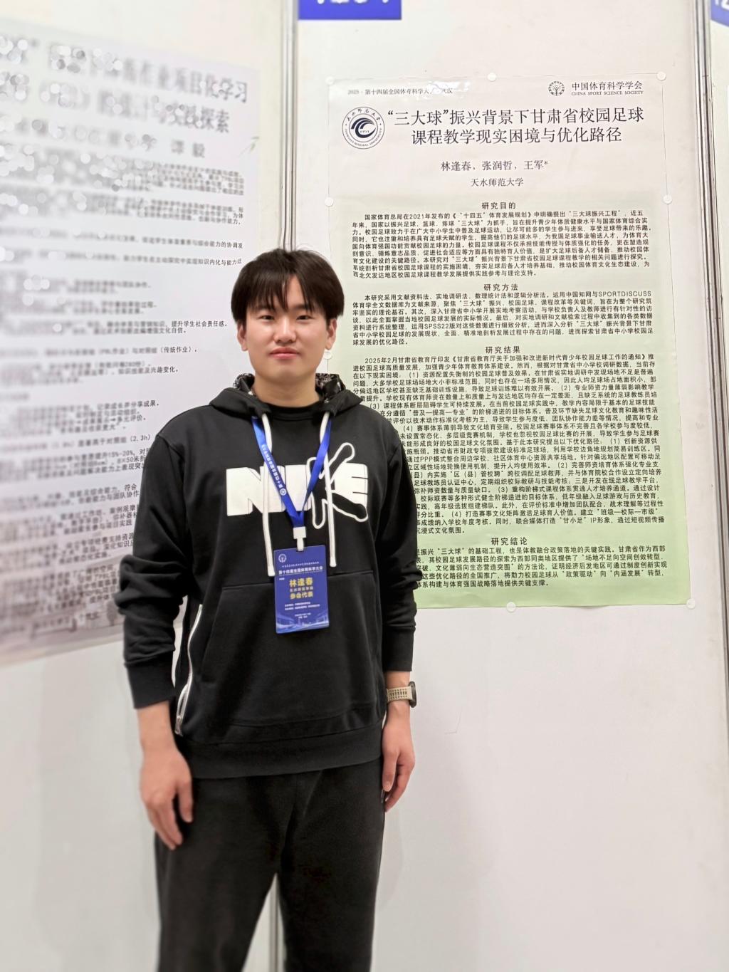 全国体育科学大会是我国体育领域规模最大、规格最高、影响力最广的综合性学术盛会,迄今已成功举办十四届。天水师范大学体育运动与健康学院师生高度重视这一宝贵的学术交流机会,我院2023级、2024级研究生3篇论文被大会录用为墙报交流。研究不仅聚焦体育科学的前沿问题,体现了学术探索的敏锐度,也全面展现了我院研究生扎实的学术功底、严谨的科研态度与持续的创新追求。